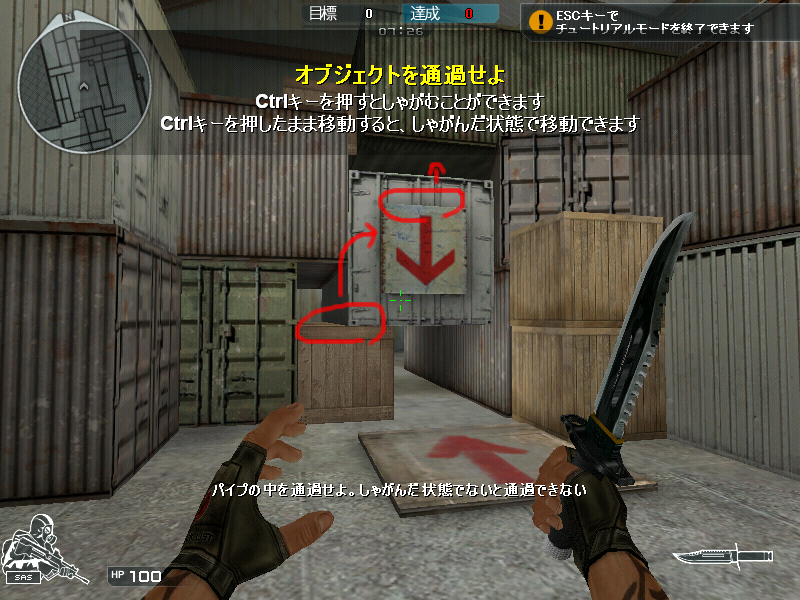 SSの通り、「オブジェクトを通過せよ」の訓練の所まで行き、