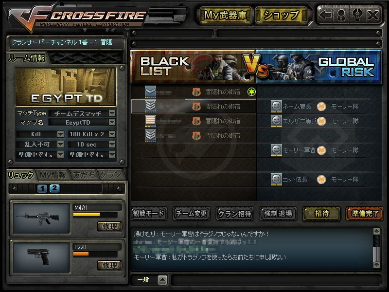 オンラインFPS,CF(クロスファイア)の攻略兼、CFクラン『雪隠れの御宿』のクランページ。
